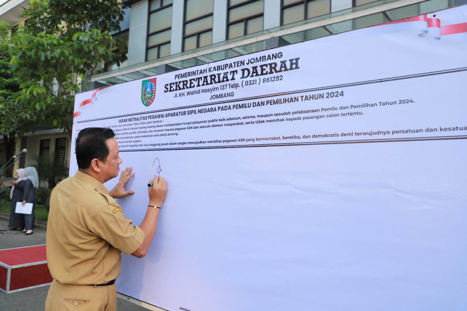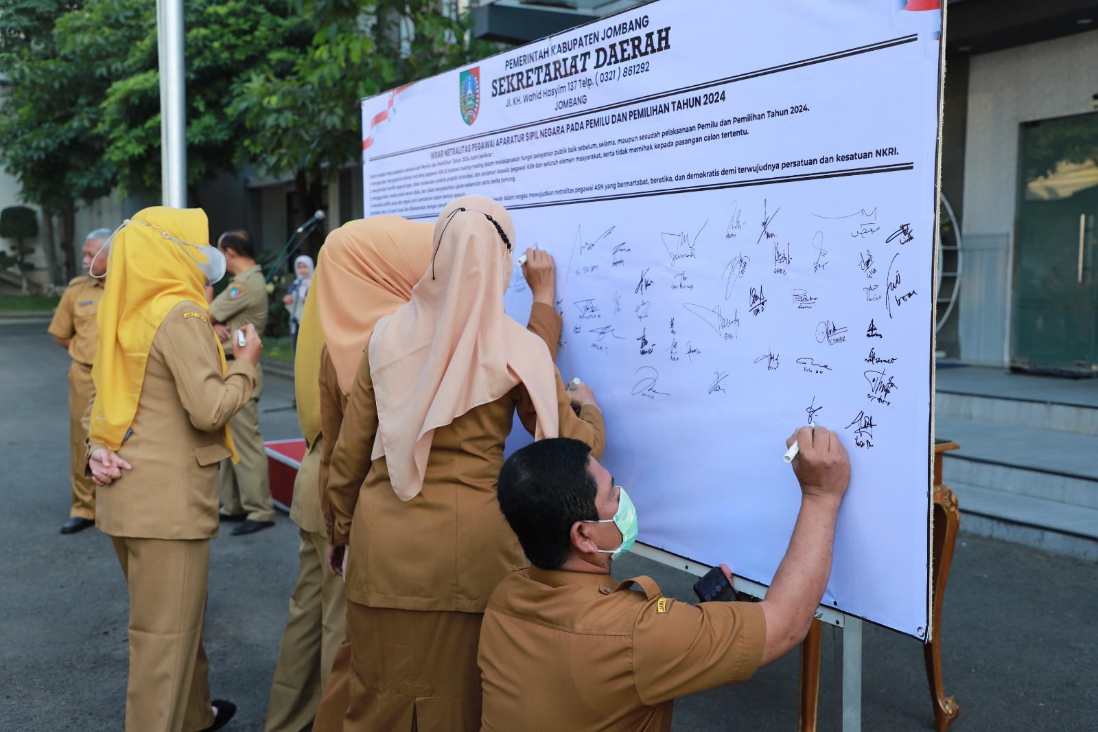 Dalam rangka mewujudkan pegawai ASN lingkup Pemerintah Kabupaten Jombang yang netral dan profesional serta terselenggaranya Pemilihan Umum dan Pemilihan Tahun 2024 di Kabupaten Jombang yang berkualitas Bupati Jombang mengeluarkan Surat Edaran Nomor 800/397/415.01/2023 tentang Netralitas Pegawai Aparatur Sipil Negara Dalam Penyelenggaraan Pemilihan Umum dan Pemilihan Tahun 2024 menindaklanjuti keputusan bersama MenPANRB, Menteri Dalam Negeri dan Ketua Badan Pengawa Pemilihan Umum Nomor 02 Tahun 2022, Nomor 800-5474 Tahun 2022, Nomor 246 Tahun 2022, Nomor 30 Tahun 2022 dan Nomor 1447.1/PM.01/K.1/09/2022 tentang Pedoman Pembinaan dan Pengawasan Netralitas Pegawai Aparatur Sipil Negara dalam Penyelenggaraan Pemilihan Umum dan Pemilihan serta surat Gubernur Jawa Timur tanggal 31 Oktober 2022 Nomor 800/7543/204/2022 tentang Netralitas ASN dalam Pemilihan Umum dan Pemilihan Tahun 2024.
