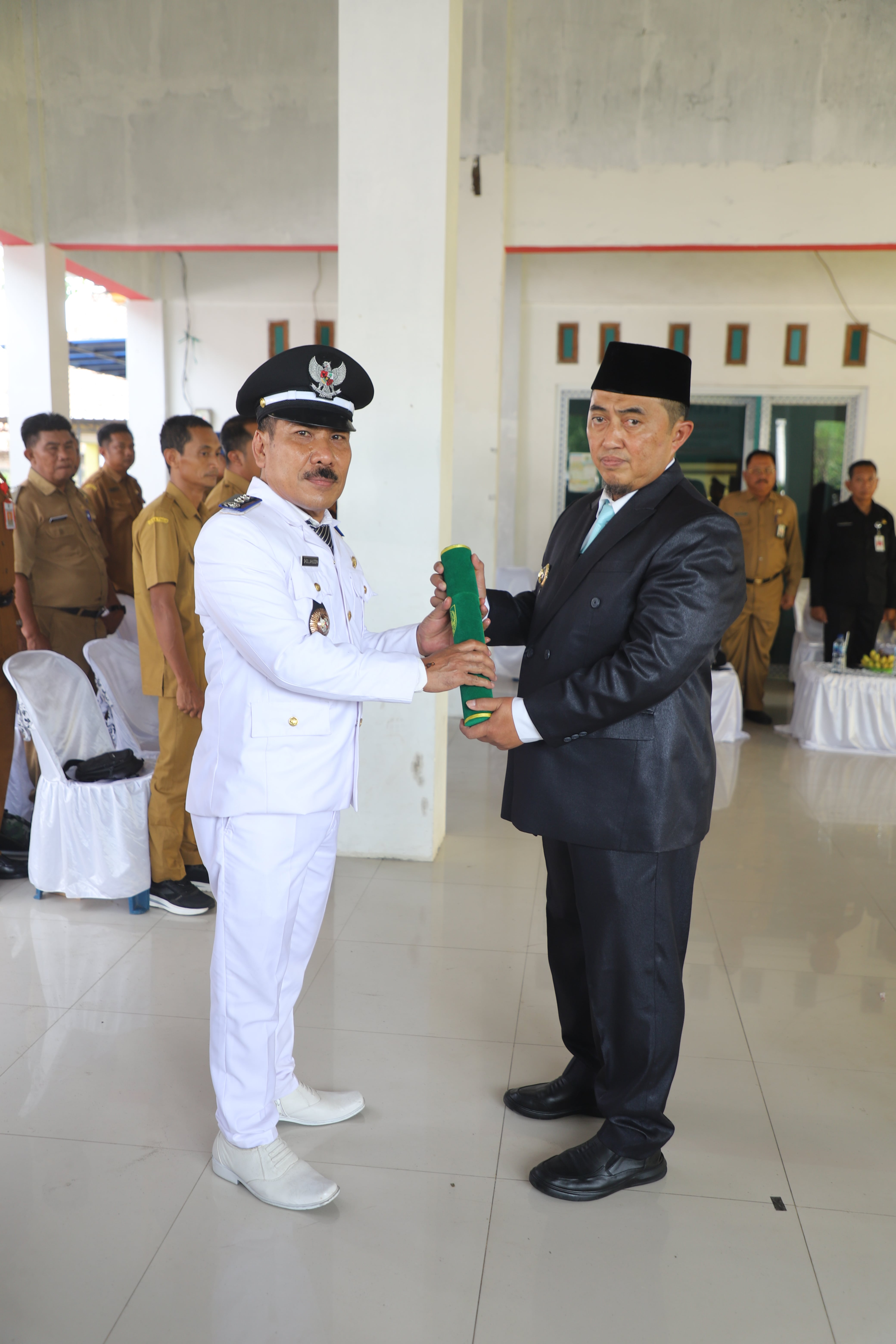 Pj Bupati Jombang menyampaikan apresiasi dan terima kasih kepada Heri Subagyo atas dedikasi dan pengabdiann selama menjabat sebagai Penjabat Kepala Desa Karobelah.