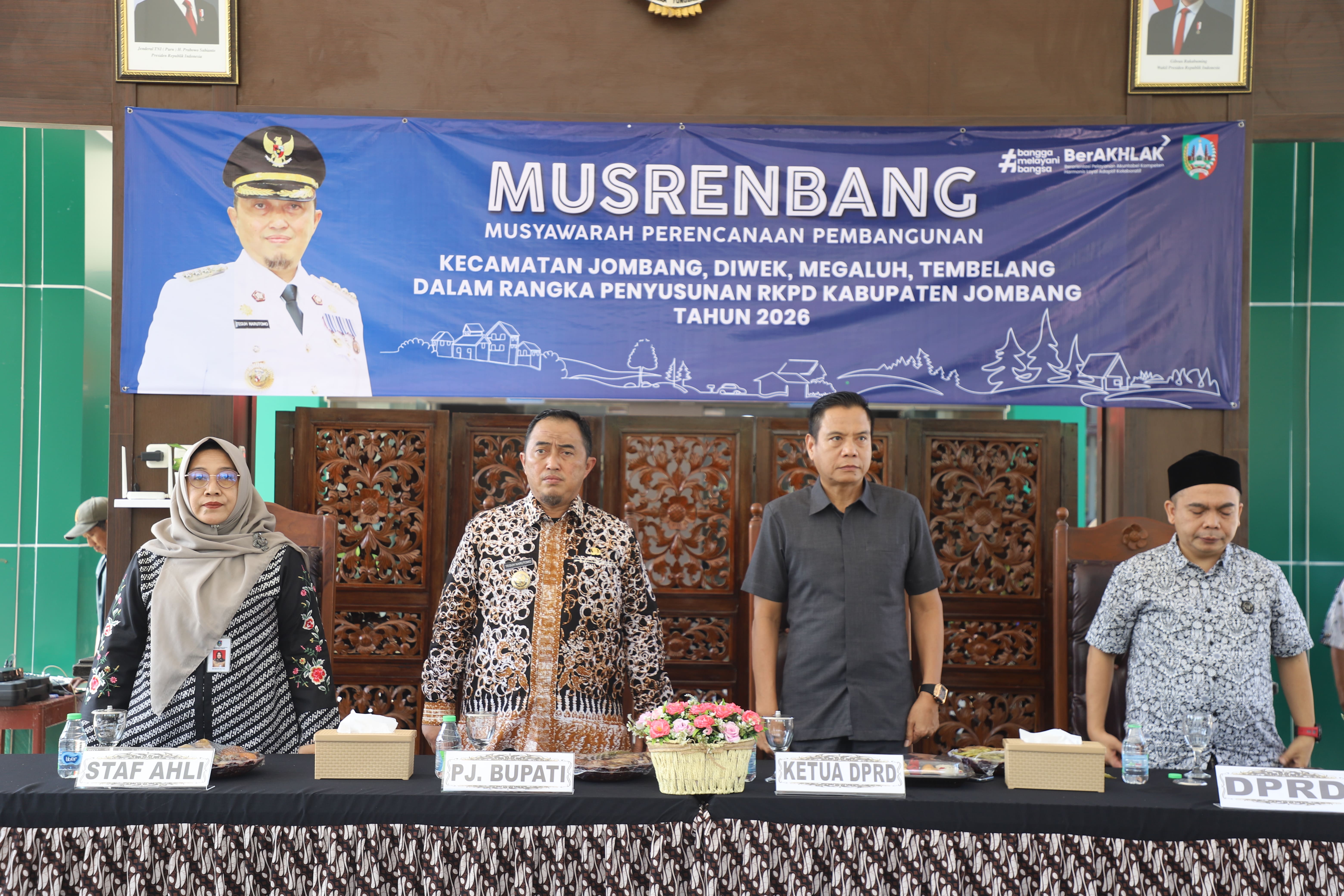 JOMBANG, BAGIAN PROTOKOL DAN KOMUNIKASI PIMPINAN - Pemerintah Kabupaten Jombang gelar Musyawarah Perencanaan pembangunan (Musrenbang) dalam rangka penyusunan Rencana Kerja Pemerintah Daerah (RKPD) Kabupaten Jombang Tahun 2026, bertempat di pendopo Kecamatan Jombang. Kamis (13/2).