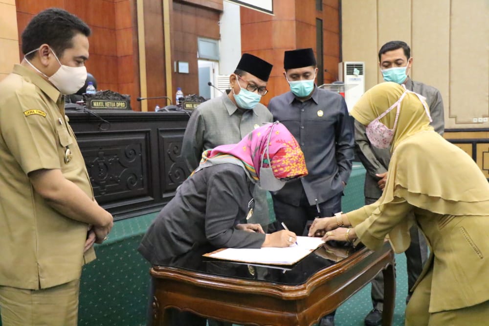 Paripurna tersebut diakhiri dengan penandatanganan berita acara penetapan Perda secara berturut turut oleh Bupati dan Para Pimpinan DPRD Jombang.