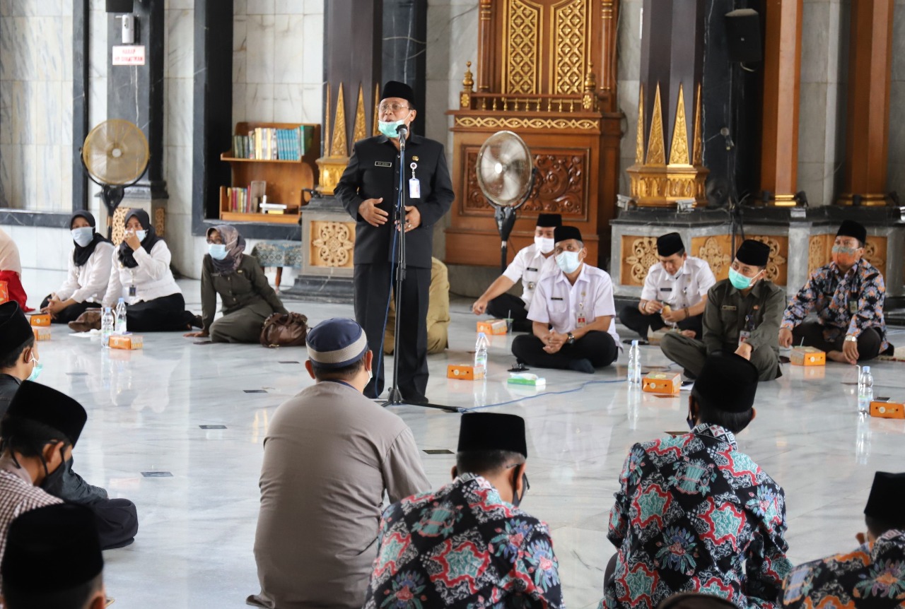 Pembukaan MTQ Ke - XXIX Tahun 2020 dilaksanakan di Masjid Agung Baitul Mukminin Jombang dengan memperhatikan protokol pencegahan Covid-19, Rabu (25/11/2020) pagi. Hadir Sekdakab Jombang, Asisten, Kepala OPD, Camat dan para Dewan Hakim yang bertugas memberikan penilaian pada MTQ kali ini.