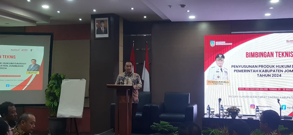 Pada hari Kamis dan Jumat (29-30 Agustus) bertempat di Ruang Bromo Hotel Aria Gajayanan Malang dilaksanakan bimbingan teknis peraturan perundang-undangan yang dilaksanakan oleh Bagian Hukum Setda Kabupaten Jombang.