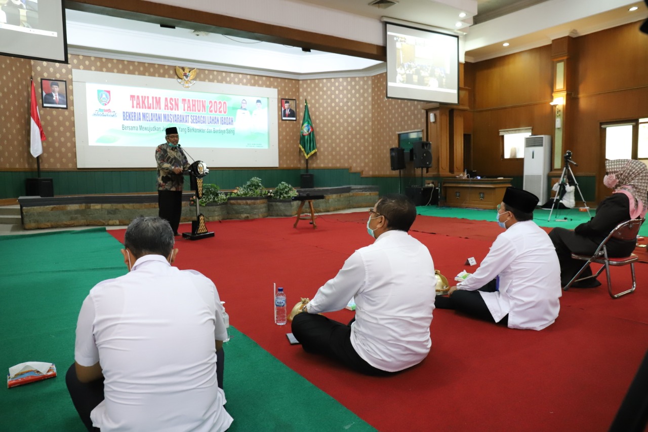 JOMBANGKAB. BAGIAN ADM. KESRA - Taklim ASN yang dilaksanakan secara Virtual dan di ikuti oleh seluruh SKPD termasuk 21 Kecamatan di Kabupaten Jombang.