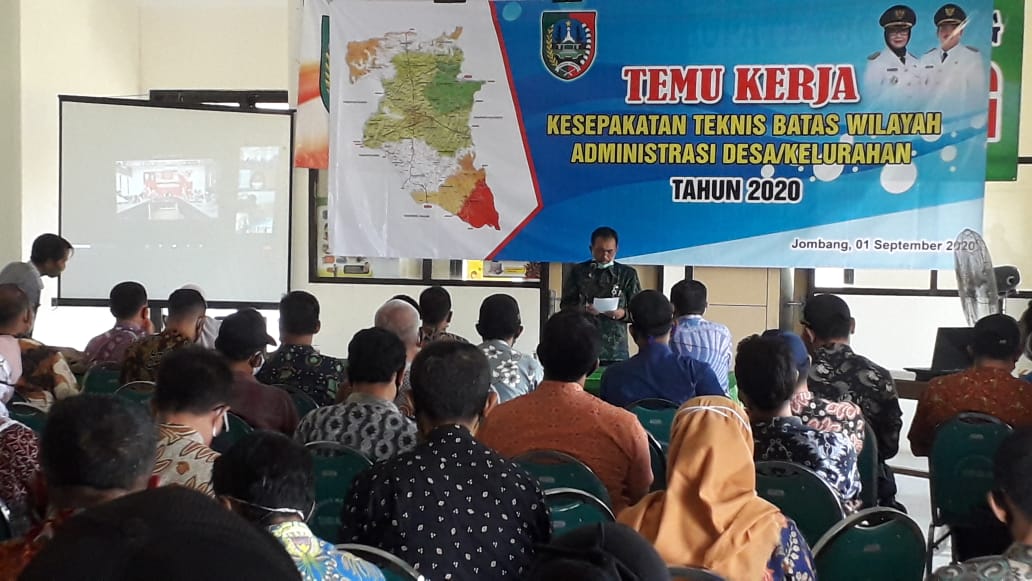 JOMBANGKAB.BAGPEM - Dalam rangka mensukseskan kebijakan Pemerintah Pusat yaitu kebijakan satu Peta (One Map Policy) sebagaimana yang disampaikan oleh Bapak Presiden Republik Indonesia dan juga mempercepat proses Penyelesaian Penegasan Batas yang ditandai dengan penerbitan Peraturan Bupatinya, maka Pemerintah Kabupaten Jombang yang dalam hal ini Bagian Administrasi Pemerintahan Setda Kabupaten Jombang melakukan kegiatan Penegasan Batas Desa/Kelurahan melalui Kegiatan Temu Kerja Kesepakatan Teknis Batas Desa/Kelurahan yang bekerja sama dengan Badan Informasi Geospasial (BIG). Kegiatan Temu Kerja ini dilaksanakan selama 3 (tiga) hari dari tanggal 1 sampai dengan 3 September 2020 secara daring (zoom meeting) yang bertempat di Kantor Kecamatan Tembelang dan Ruang Bung Tomo Pemkab. Jombang. Pelaksanaan kegiatan temu kerja diikuti oleh Kecamatan Tembelang, Peterongan dan Jombang, selain itu desa tetangga di 7 (tujuh) kecamatan lainnya yang bberbatasan langsung juga turut diundang untuk menghadiri kegiatan tersebut.