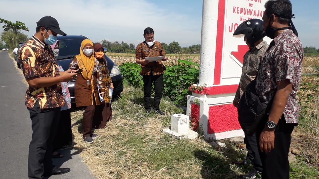 JOMBANGKAB.BAGPEM - Pemerintah Kabupaten Jombang dalam hal ini Bagian Administrasi Pemerintahan Setda. Kabupaten Jombang telah melaksanakan Kegiatan Penegasan Batas Desa dan Batas Kecamatan di wilayah Kecamatan Perak pada tahun 2019. Sebagai tindak lanjut dan evaluasi dari kegiatan tersebut maka Tim lapangan yang terdiri dari Bagian Administrasi Pemerintahan dengan didampingi oleh Kasi Pemerintahan Kecamatan Perak dan juga Aparatur Pemerintah desa setempat melakukan tinjau lapang atas laporan kondisi Pilar Batas Desa di Kecamatan Perak.