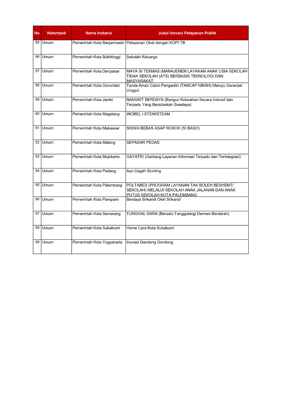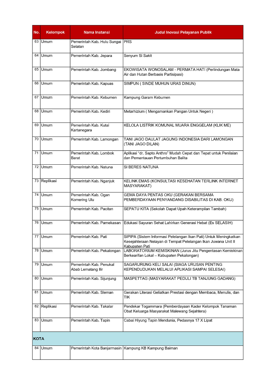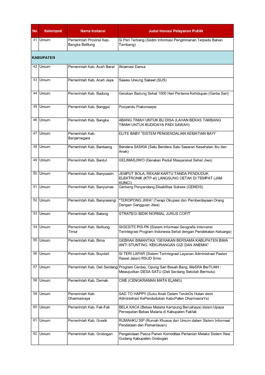 Pemerintah Kabupaten Jombang melalui Inovasi Ekowisata Wonosalam Permata Hati dari Dinas Lingkungan Hidup berhasil menorehkan prestasi kedalam Top 99 Inovasi Pelayanan Publik yang diselenggarakan oleh Kementerian Pendayagunaan Aparatur Negara dan Reformasi Birokrasi. Hasil resmi Top 99 Inovasi Pelayanan Publik tersebut tertuang pada Pengumuman Nomor : B/153/PP.00.05/2020 tentang Top 99 Inovasi Pelayanan Publik Tahun 2020 dan 15 Finalis Kelompok Khusus Kompetisi Inovasi Pelayanan Publik Di Lingkungan Kementrian / Lembaga / Pemerintah Daerah, BUMN dan BUMD Tahun 2020.