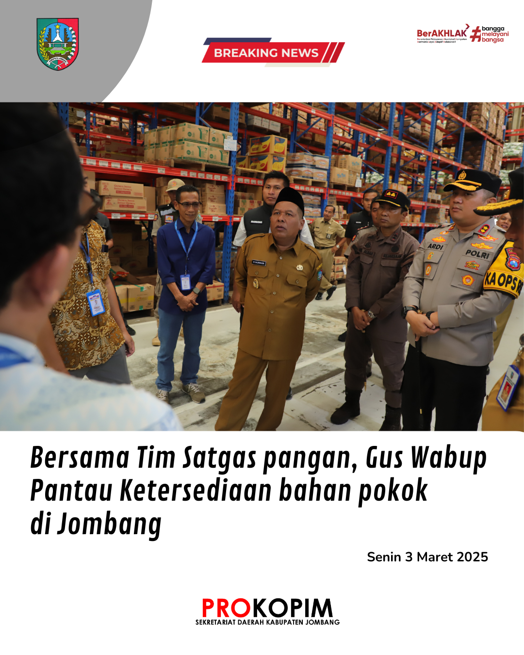 Sidak Bahan Pokok kali ini Dipimpin oleh Wakil Bupati Jombang, M. Salmanudin, S.Ag., M. Pd., yang juga dihadiri Ikut dalam rombongan diantaranya Tim TPID (Tim Pengendali Inflasi Daerah) dan Satgas Pangan Kabupaten Jombang serta dihadiri oleh Kapolres Jombang, Kepala Kejaksaan Negeri Kabupaten Jombang, Kepala Komando Distrik Militer 0814 Kabupaten Jombang.